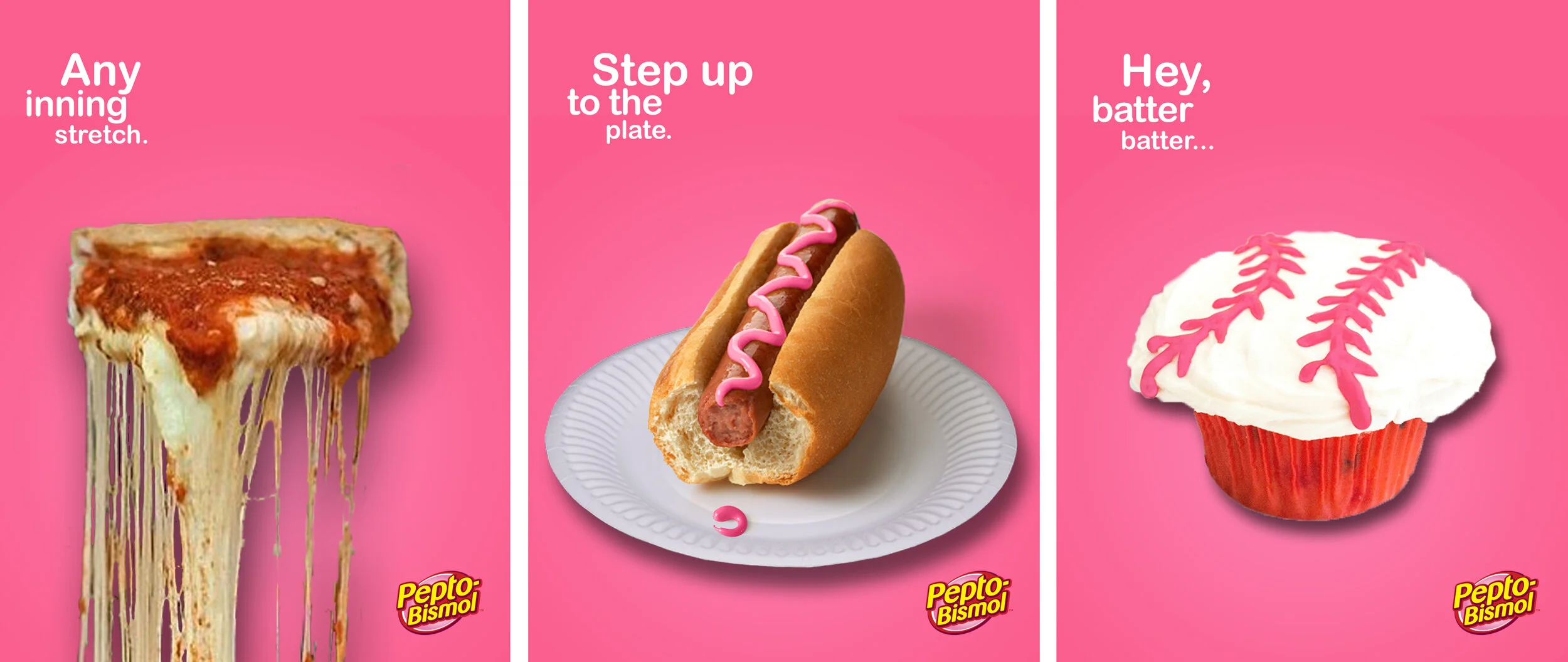 Digestive issues spike over the summer thanks to all the gloriously greasy grub found at baseball games. We plastered all 30 MLB stadiums in bright pink billboards to catch attendees’ attention. Then, on May 11 - National Eat What You Want Day - we dished out free sample packs to fans at every game. We didn’t forget the little ones - they got Pepto-Bobble-Bellies.